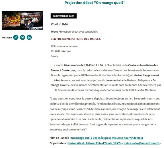 Festival Alimenterre - ciné-débat film "On mange quoi ?"