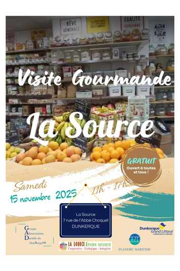 Embarquez pour une croisière gustative et festive le long de LA SOURCE. Notre équipage vous guidera et vous présentera le fonctionnement de notre EPICERIE PARTICIPATIVE AUTOGEREE et son lien privilégié avec les producteurs locaux. A chaque escale, vous aurez le plaisir de savourer des produits locaux, de qualité, valorisés par les adhérents.